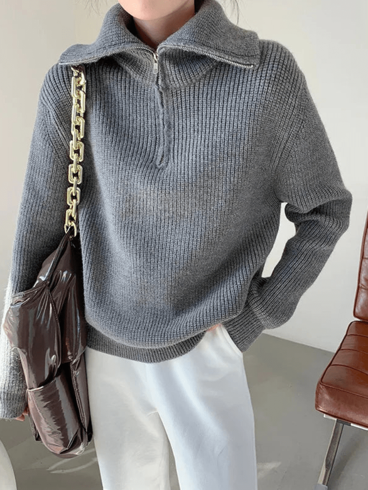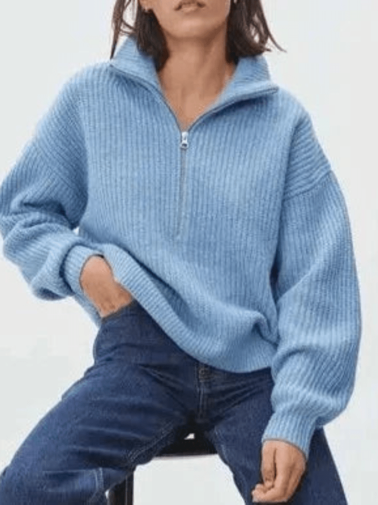 Calia | Strikket dametrøje til vinter med half zip og høj krave, tøj til kvinder | Sweater