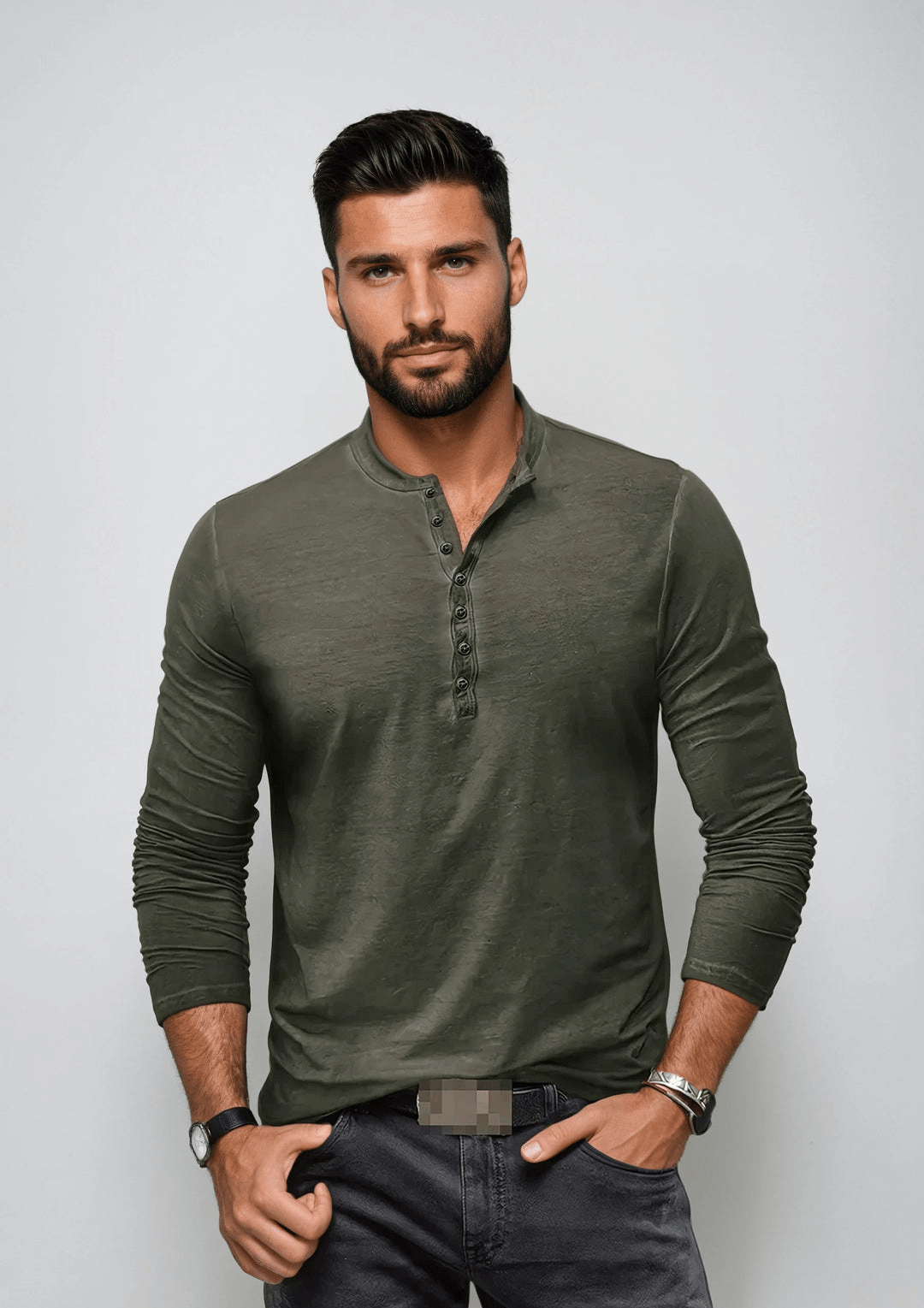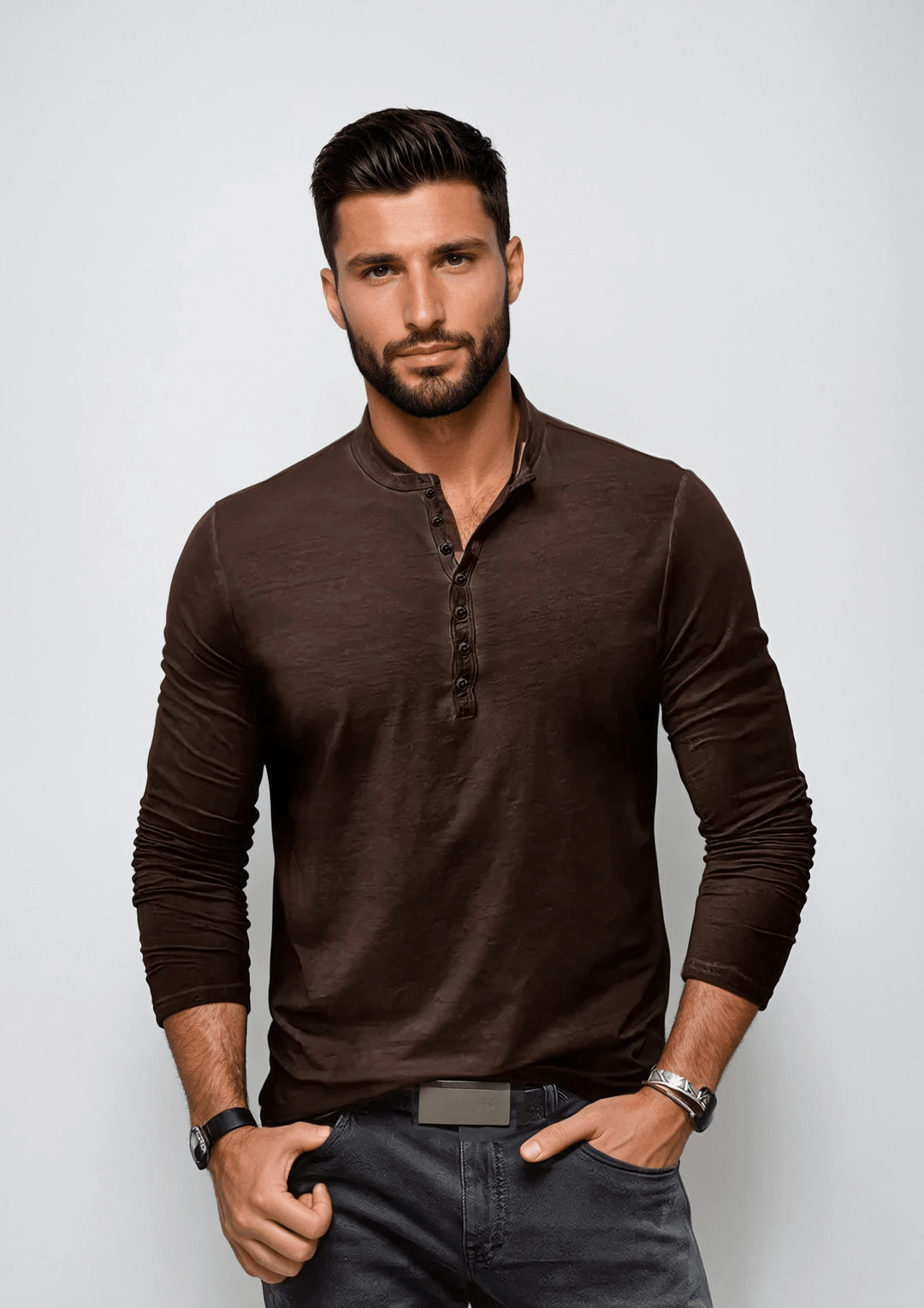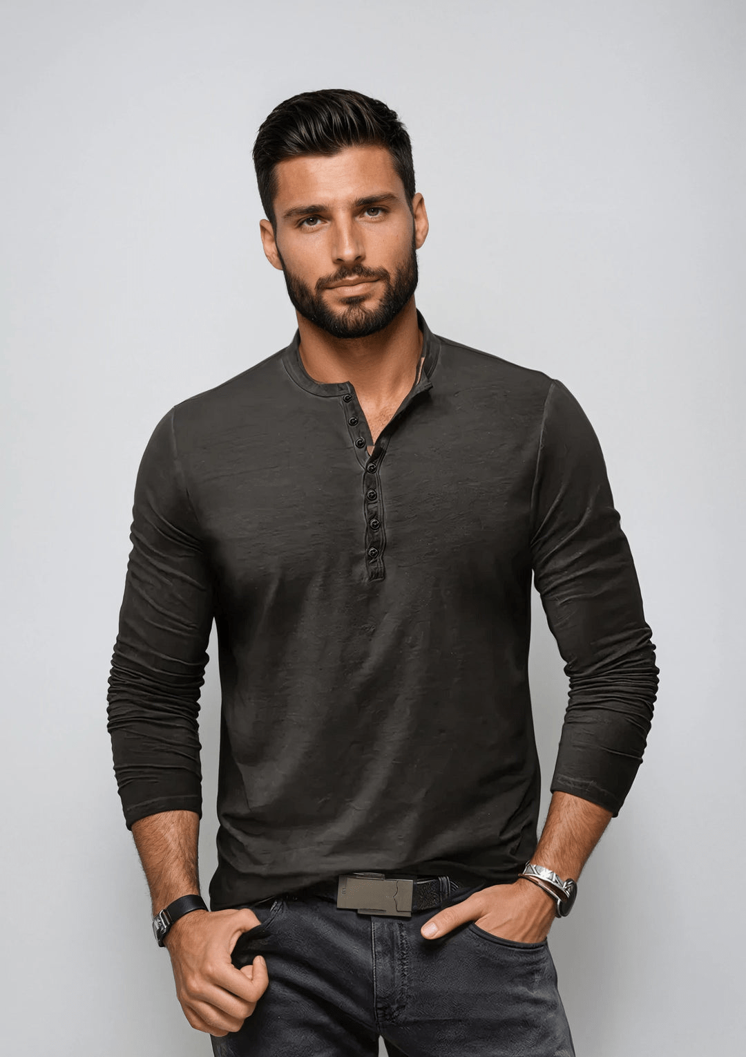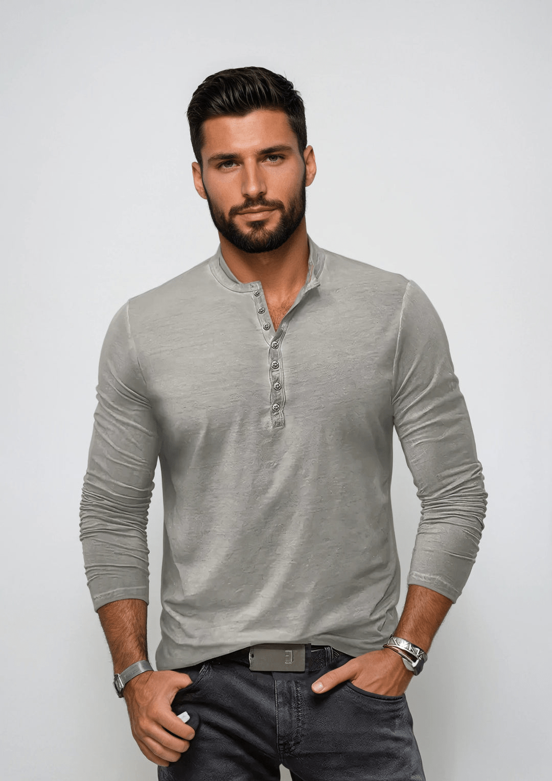 Henley Shirt | Herre T-shirt | Haldor | Langærmet t-shirt med knapper til casual lag-på-lag look