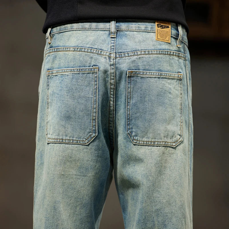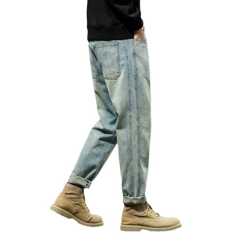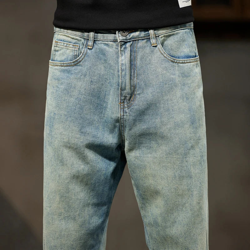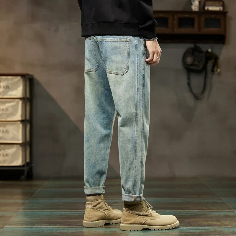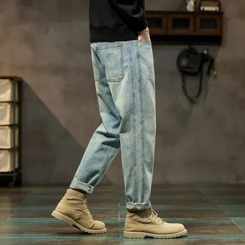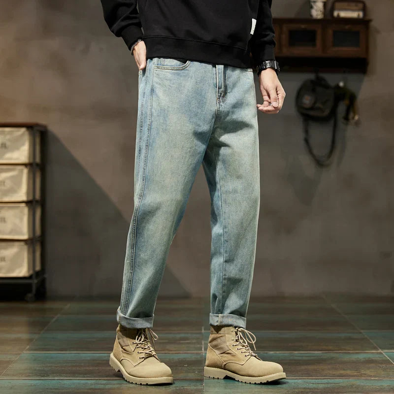 Havren | Herre Cuffed Tapered Denim Jeans i Lys Vask – Afslappet Hybrid Jogger Streetwear Bukser