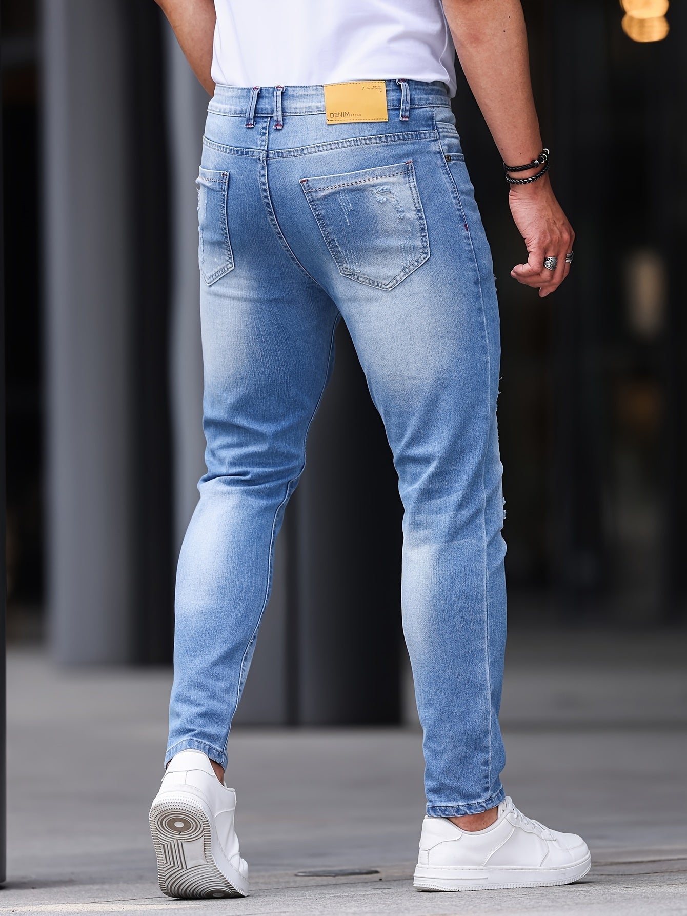 Havik | Herre Distressed Slim Fit Denim Jeans i Lys Vask med Ripped Detaljer | Bukser